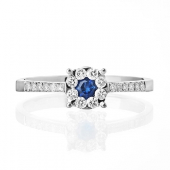 Orecchini da donna in oro 18 carati della collezione Moonlight di Forever Unique, Gli orecchini a lobo sono caratterizzati da un cestino dove al centro è presente uno Zaffiro ct 0.12 e circondato da diamanti taglio brillante con una caratura di 0.10. La chiusura è a farfallina il peso totale del gioiello è di 1.5 grammi. Interamente realizzato a mano in Italia e verrà spedito con scatola e garanzia originale.