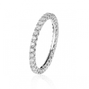 Anello da donna in oro bianco 18 carati arricchito da diamanti dal colore "F", purezza SI e 1.49ct di caratura totale appartenente alla collezione eternelle di Forever Unique. Il gioiello è interamente realizzato a mano in Italia da mastri orafi con una misura di 14 e un peso di 3.80 grammi per un anello elegante e raffinato.Ti potrebbe interessare anche