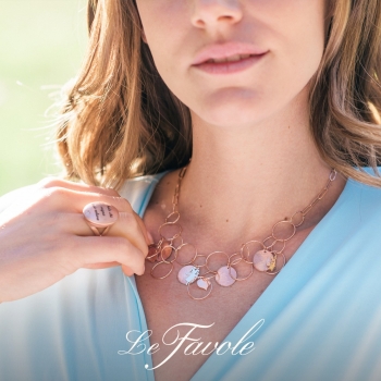 Collana di Le Favole della collezione C'era una volta. La collana è in argento 925 laminato oro rosa con pietre naturali di vari colori, arricchito da ciondoli di forme diverse. La lunghezza totale è di 40 cm. Fatto a mano in Italia.Ti potrebbe interessare anche
