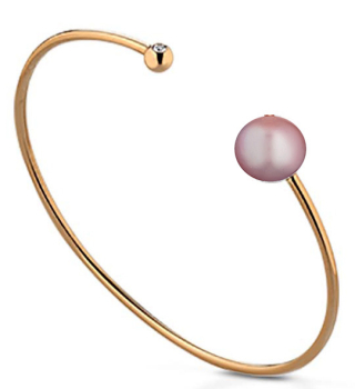 Orecchini a cerchio in oro rosa 18kt con Perla pink Fresh Water del diametro di 8/8.5mm impreziositi con diamanti da 0.24ct e comoda chiusura a farfallina di Coscia.