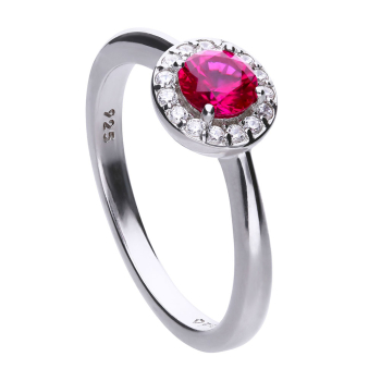Anello donna Diamonfire realizzato in argento e con un zircone blu centrale colorato di 5,0 mm e da altri quindici zirconi da 1.25 mm. Totale 0,65 Ct. Il gioiello è in lega palladio e argento 925/1000, ricoperto da una foglia di platino e con copertura finale di rodio. misura 13