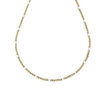 Collana da donna in oro giallo 18 carati con lavorazione a pallini. Il gioiello è lavorato a mano in Italia. La lunghezza della collana è di 45 cm con un peso di 8.7 grammi. Chiusura a moschettone.