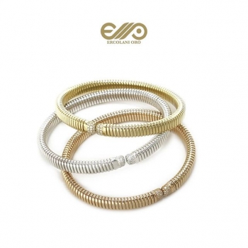Bracciale in oro 18 carati con nell'estremità un pavè di diamanti di 0.26ct Il bracciale non ha chiusura ma all'interno una molla in titanio che lo rende flessibile ed adattabile ad ogni polso.
