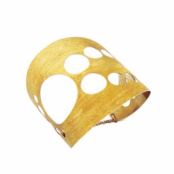 Gioiello scultura, come del resto lo sono molte creazioni del brand toscano, la collana tre cerchi Patriarchi è realizzata in argento 925 placcato oro e puntinato, una lavorazione che crea un effetto sabbioso unico, pronto a richiamare la dorata sabbia del deserto e l'immensa potenza della luce del sole.