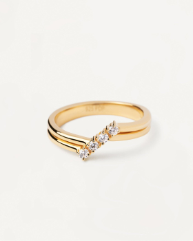Set di due anelli in argento 925, placcati in oro 18k con pavé di zirconi e forma ondulata L'anello verrà spedito con scatola e garanzia originali.Immagini