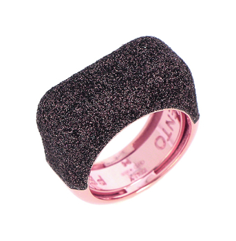 Anello con dado ricoperto d polvere di sogni colore nero in argento rosa. Nelle creazioni Polvere di Sogni, inediti giochi di luce scivolano lungo le linee sinuose dell’argento per tuffarsi in un mare di scintillanti riflessi. Le forme moderne e decise mettono in risalto lo straordinario materiale della Polvere e gli costruiscono intorno una cornice elegante e ricca di luce. Un bellissimo sogno, luccicante e avvolgente, uno di quelli da cui non ci si vuole più risvegliare. Pesavento ha reso tutto questo reale creando dei gioielli unici ed eleganti, che aspettano solo di essere indossati e di mettere in risalto la tua femminilità. Con Pesavento i sogni diventano realtà! Misura 14. Su richiesta ulteriori misure. Il gioiello verrà spedito con scatola e garanzia originali.