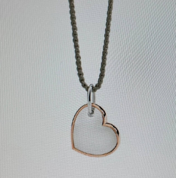 CIONDOLO XL CUORE IN ARGENTO 925 E DETTAGLIO PROFILO IN ORO ROSA 9K