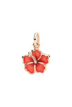 CIONDOLO FIORE IBISCO IN ORO ROSA 9K E SMALTO PERLATO ARANCIO